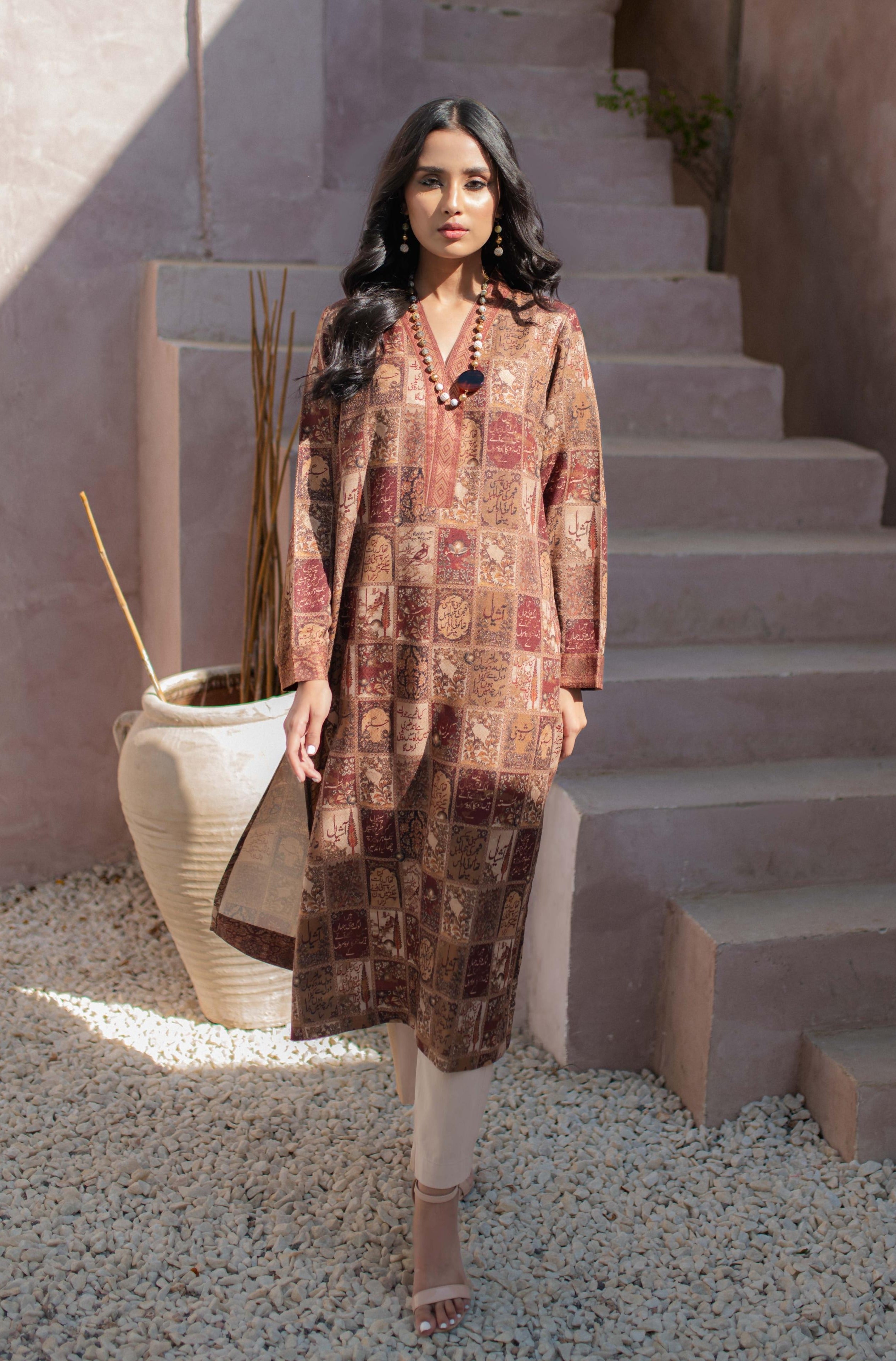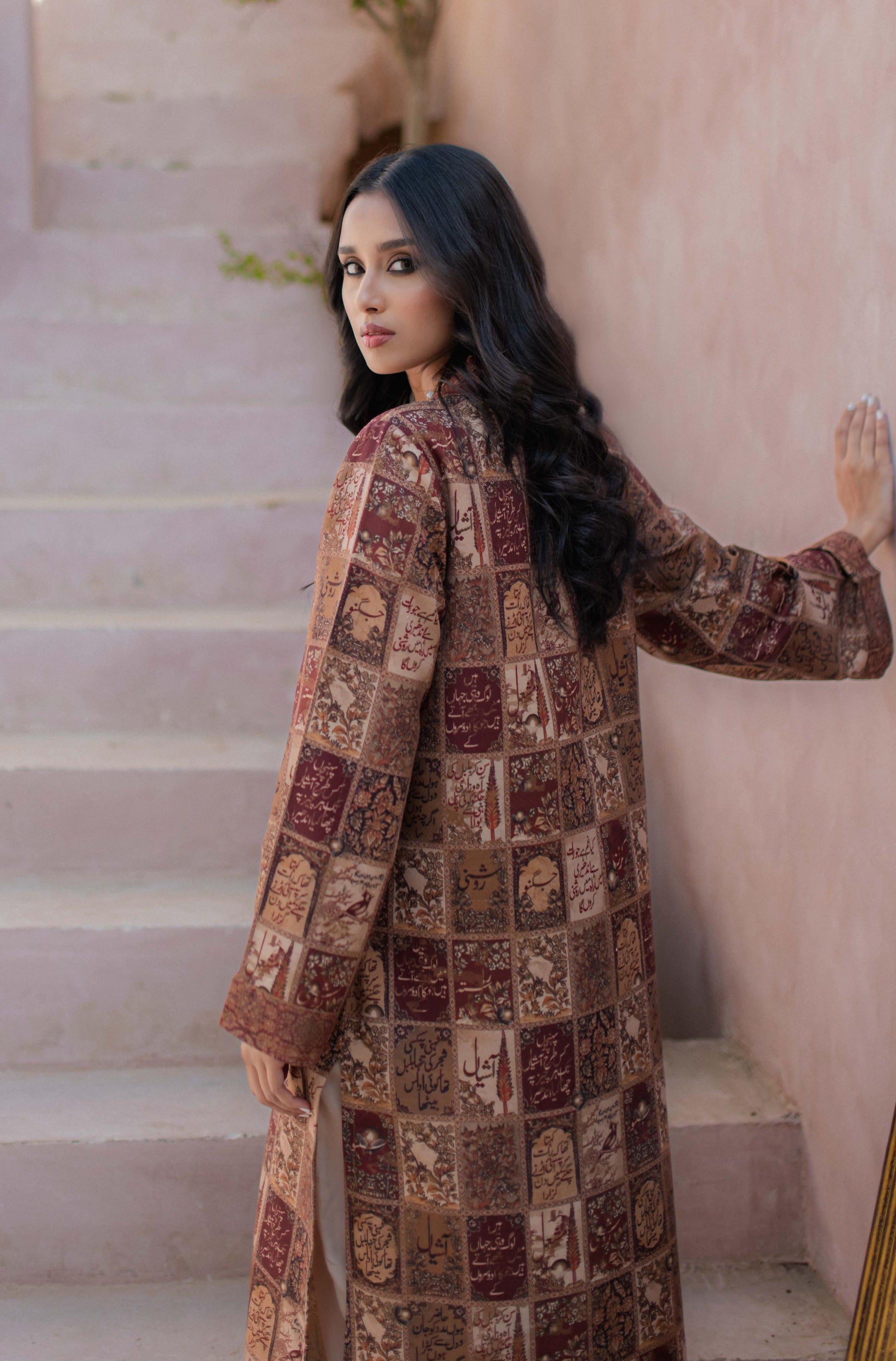 Printed Long Length Premium Jacquard Kurta, In Summer Friendly Material, Featuring Words of Allama Iqbal.