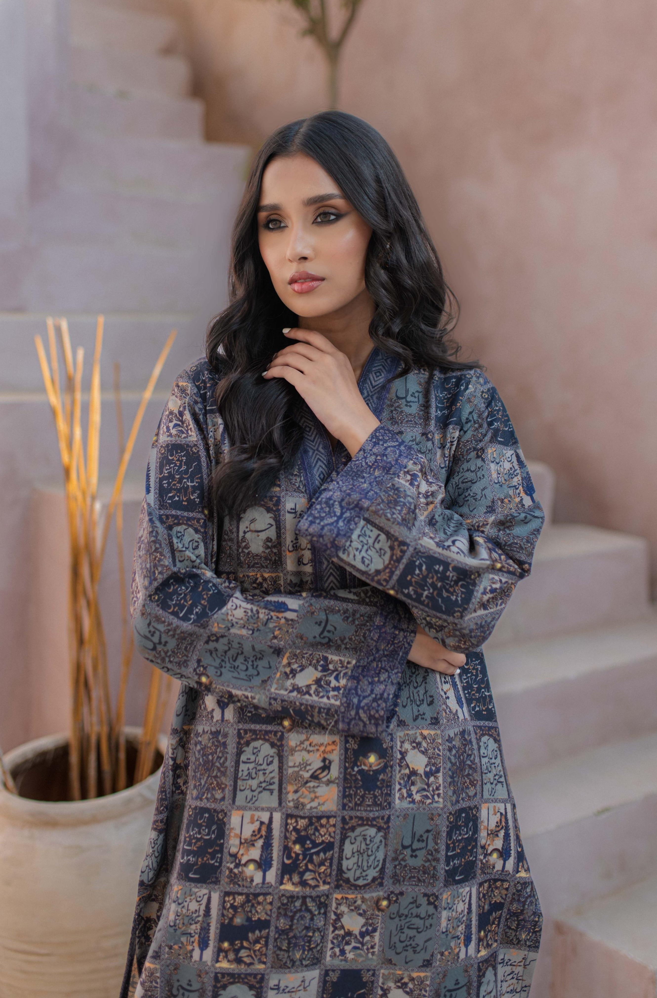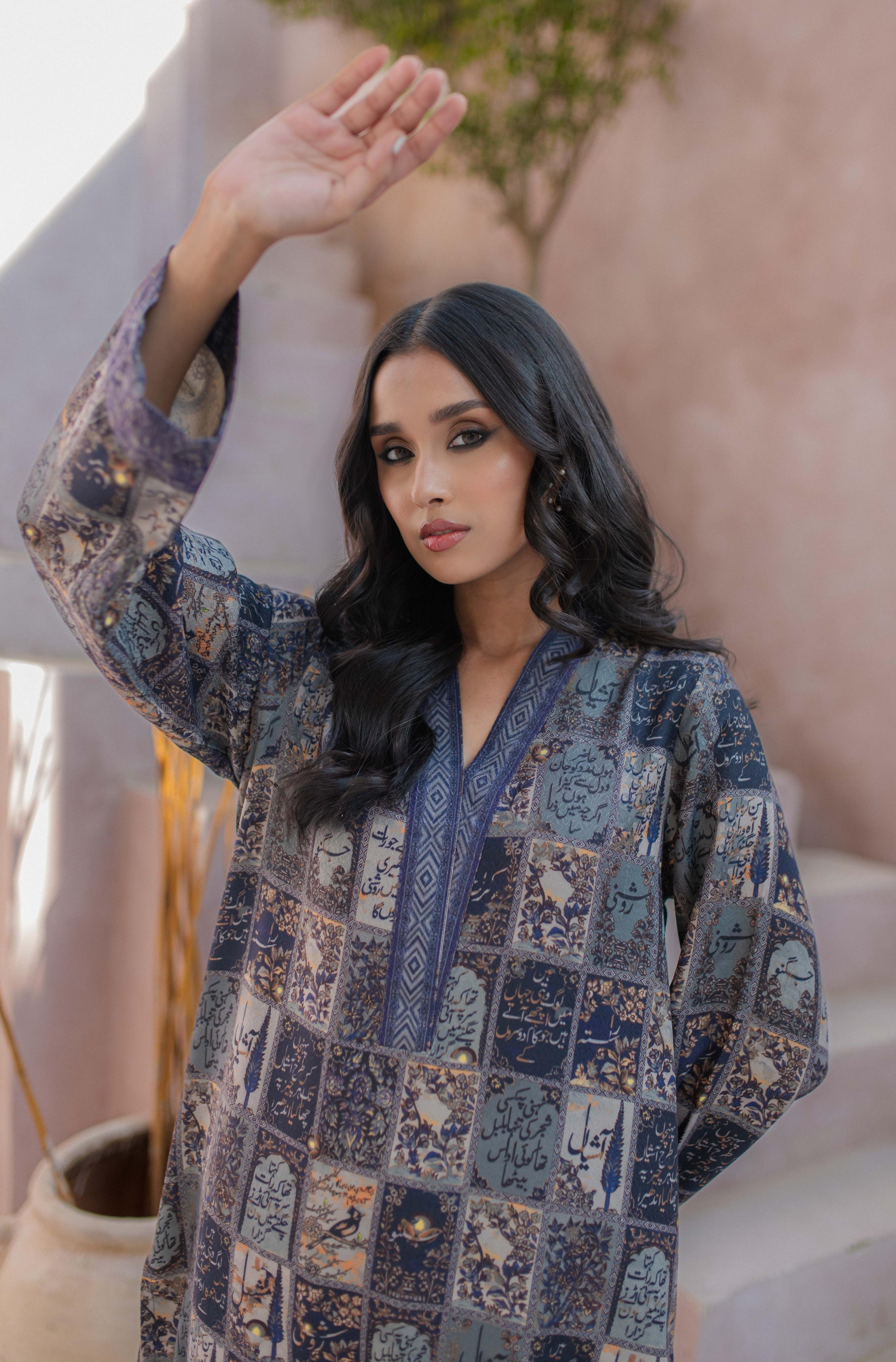 Printed Long Length Premium Jacquard Kurta, In Summer Friendly Material, Featuring Words of Allama Iqbal.