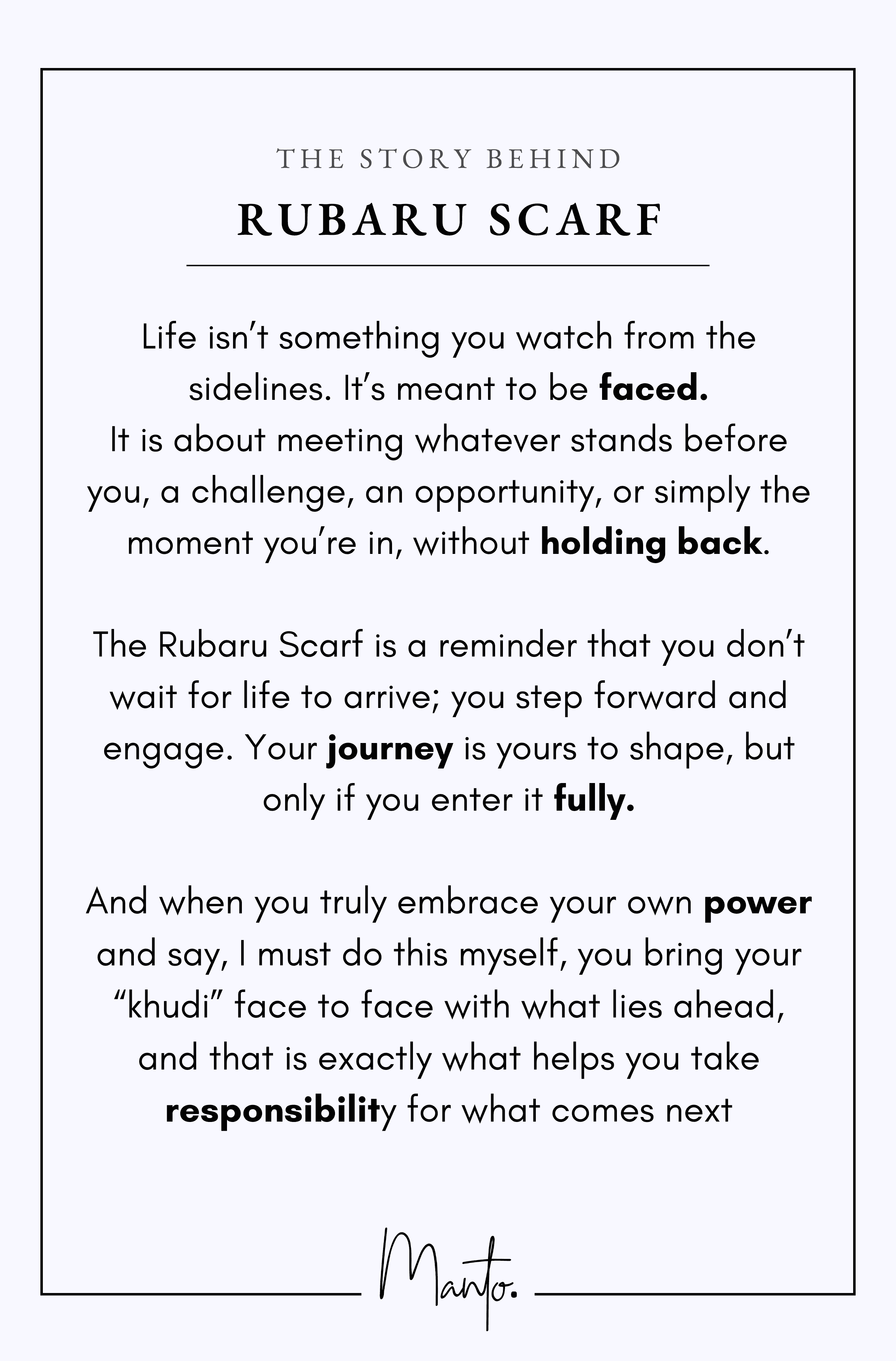 The Rubaru Scarf is a reminder that you don’t wait for life to arrive; you step forward and engage. Your journey is yours to shape, but only if you enter it fully.