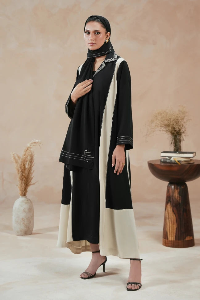 Premium georgette scarf features embroidery of random Urdu letters.