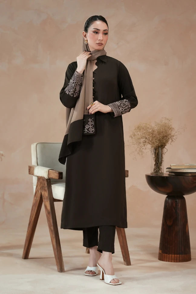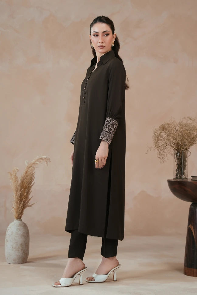- Full Sleeves with Urdu Calligraphy & Geometric Motifs Embroidered On the Cuff