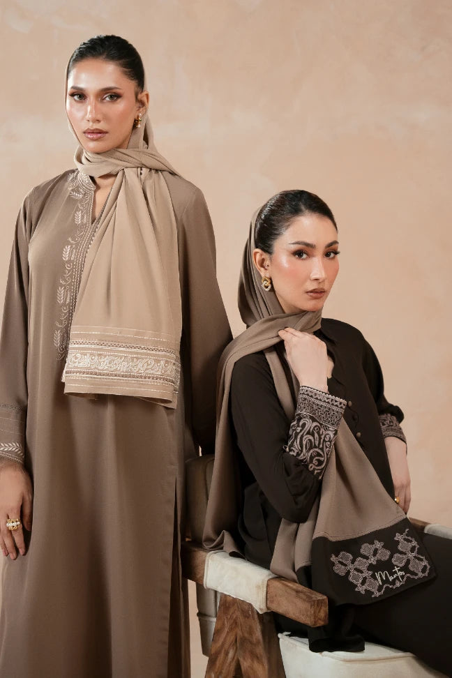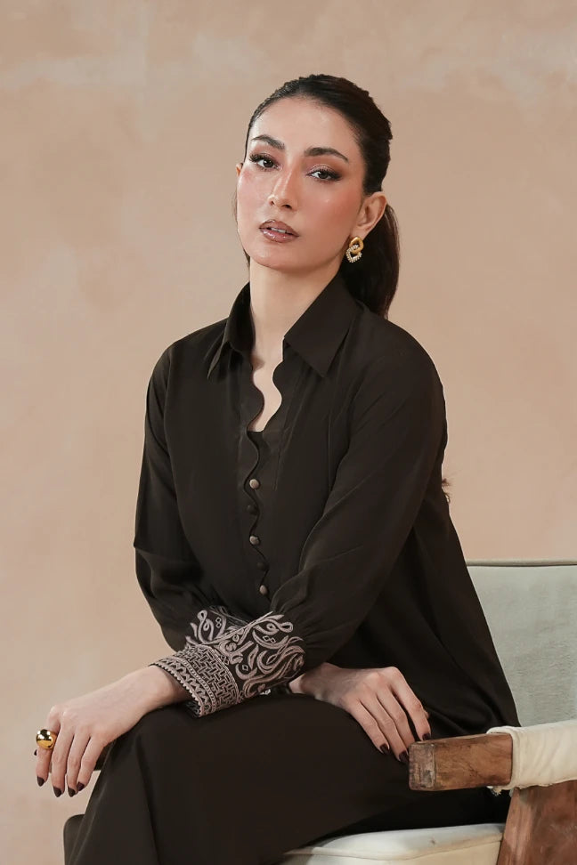 Premium georgette Co-ord, featuring random Urdu letters embroidery.