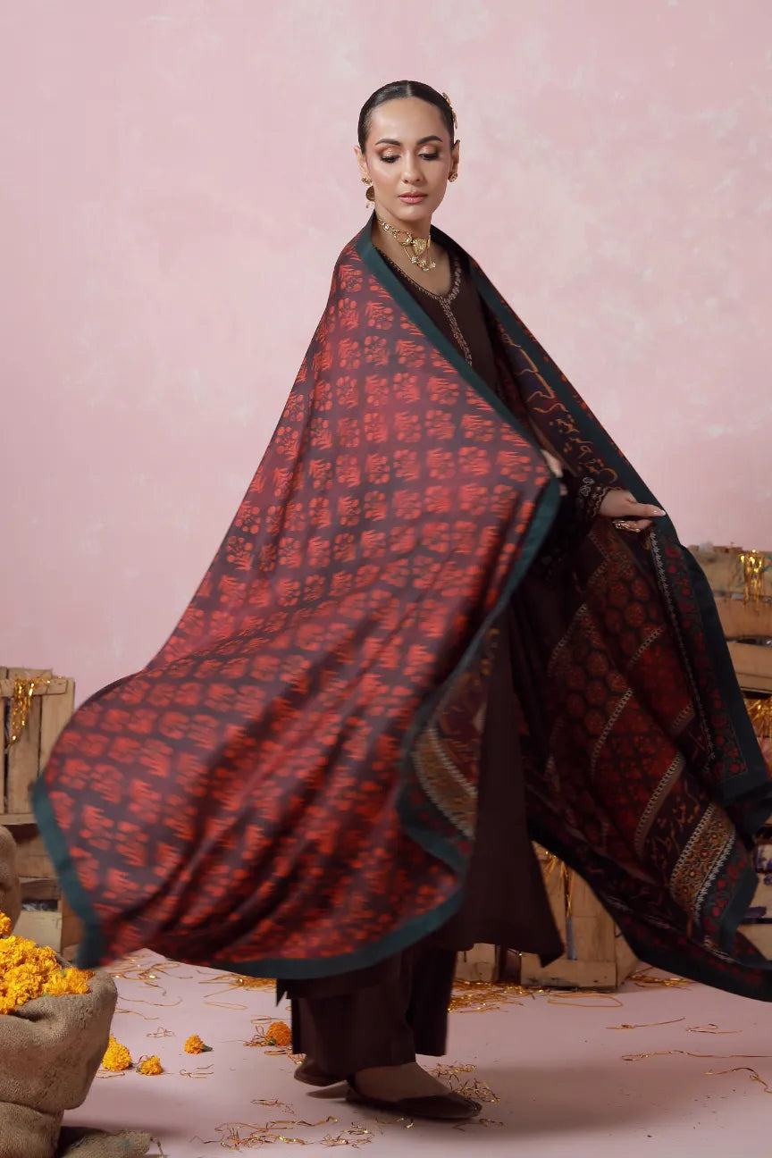 Double-sided unisex shawl, made from herringbone, featuring the words of Irfan Siddiqui calligraphed throughout.