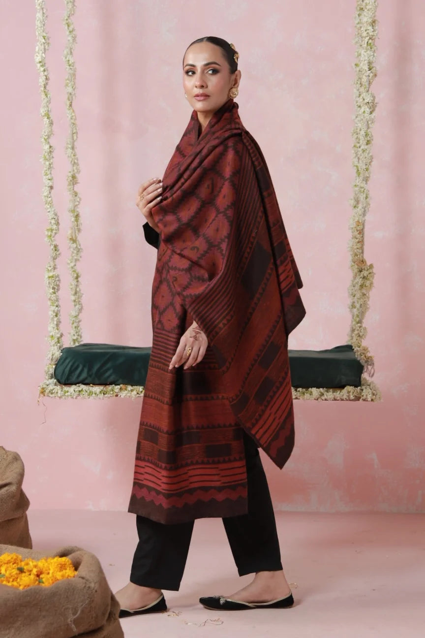 Parwana (Yearner) Weaved Shawl - Maroon