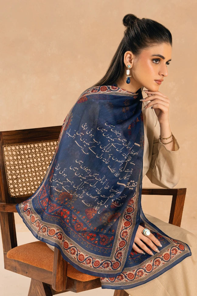 Nigaah Scarf is crafted from crinkle silk with a soft, fluid drape. Lightweight and versatile with words of Allama Iqbal