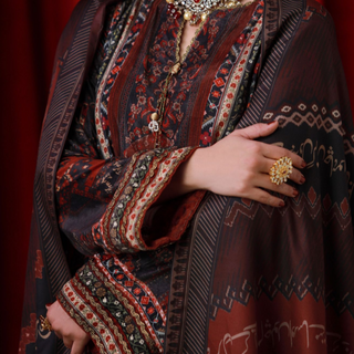 Dressed in your makhmal dress, soft and luxurious against your skin, you look around. The room is full of life… laughter, guftagu, and the soulful hum of qawwals. You hold a warm cup of Kashmiri chai, the perfect companion to this mehfil.
