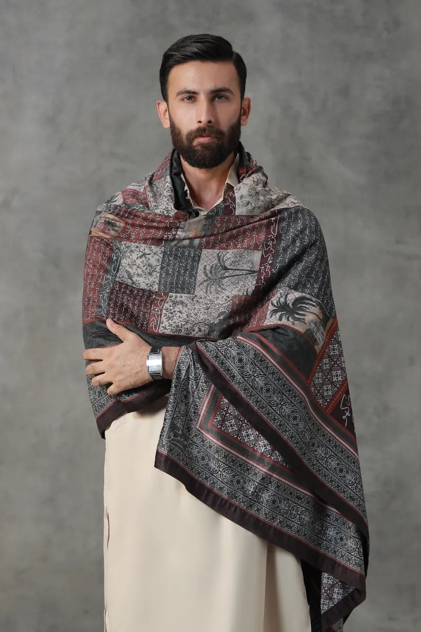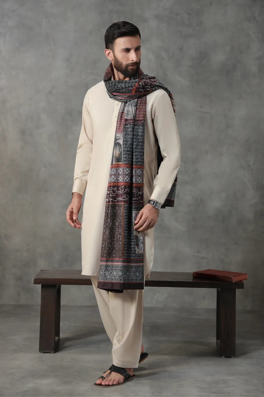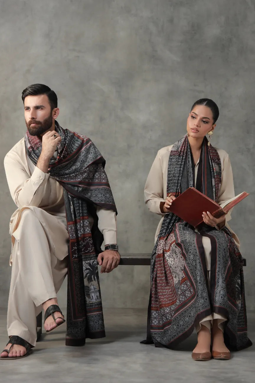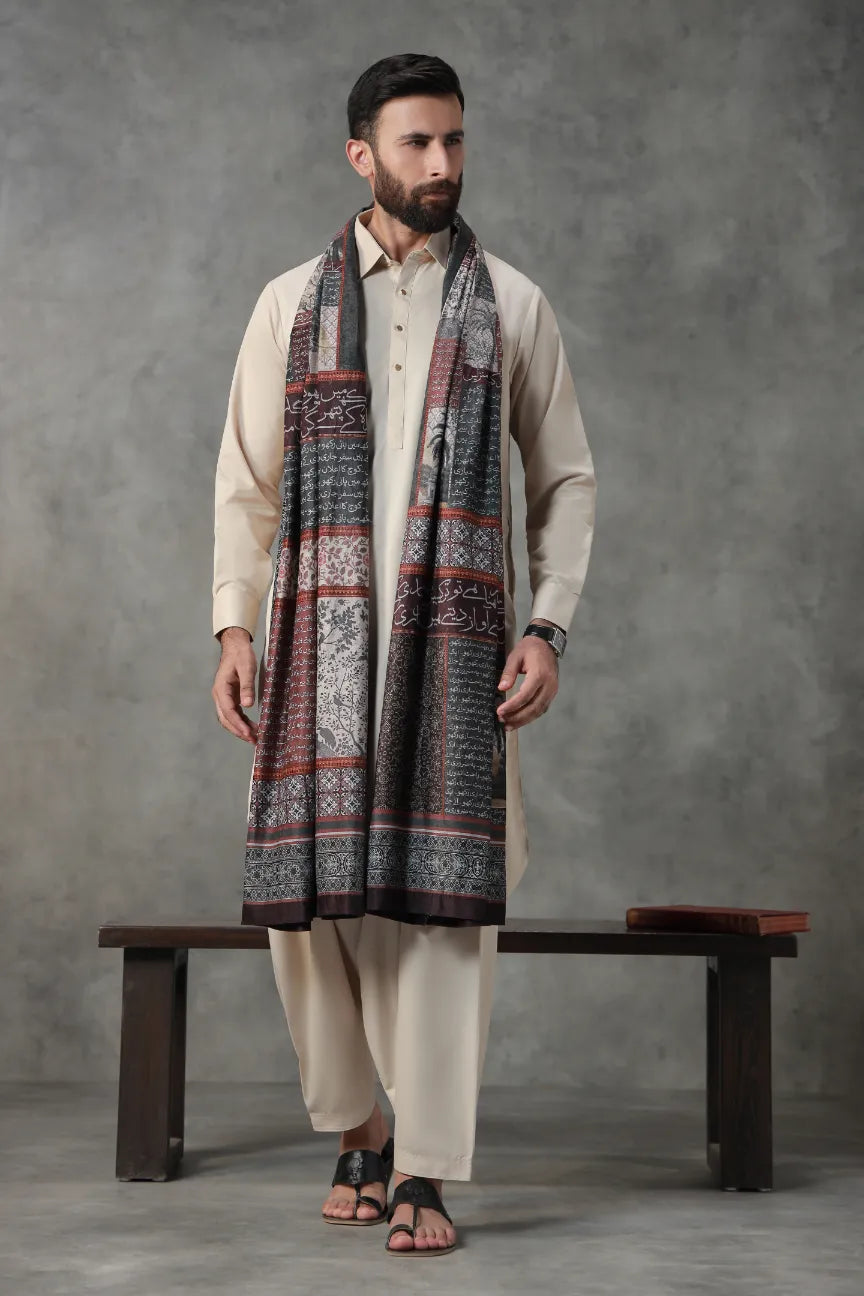 Double-sided premium velvet unisex shawl, featuring Urdu calligraphy of poetry by Rahat Indori.