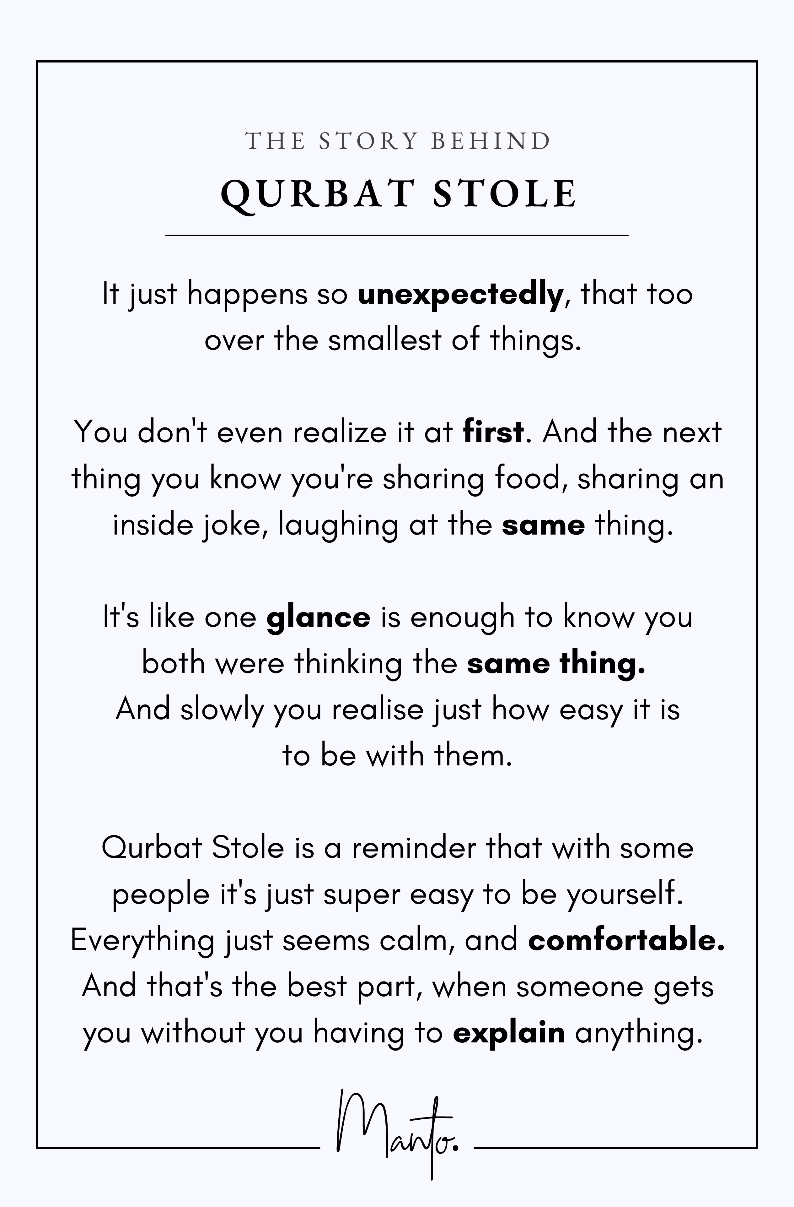 Qurbat Stole is a reminder that with some people it's just super easy to be yourself. Everything just seems calm, and comfortable. And that's the best part, when someone gets you without you having to explain anything.