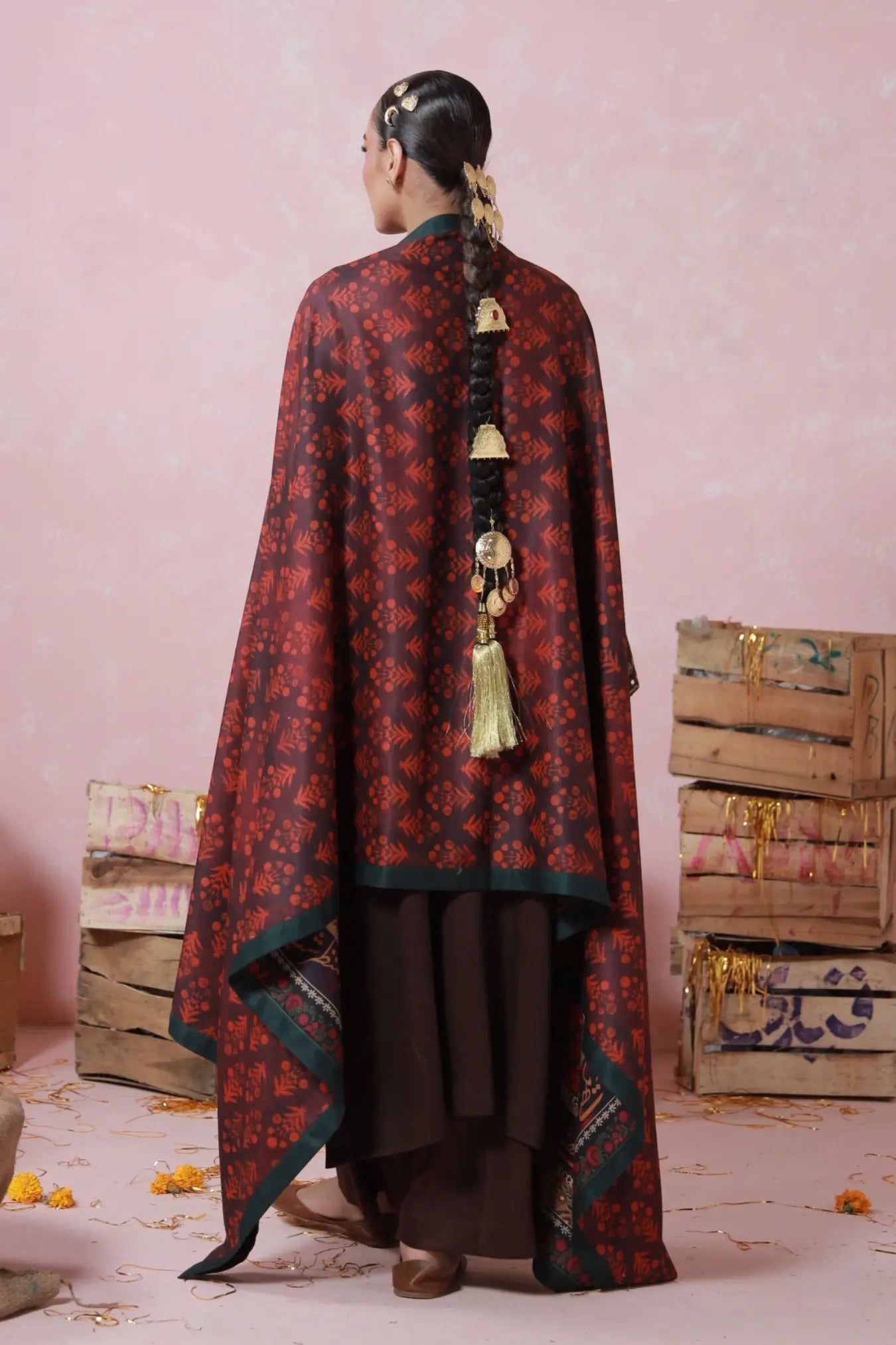 Double-sided unisex shawl, made from herringbone, featuring the words of Irfan Siddiqui calligraphed throughout.